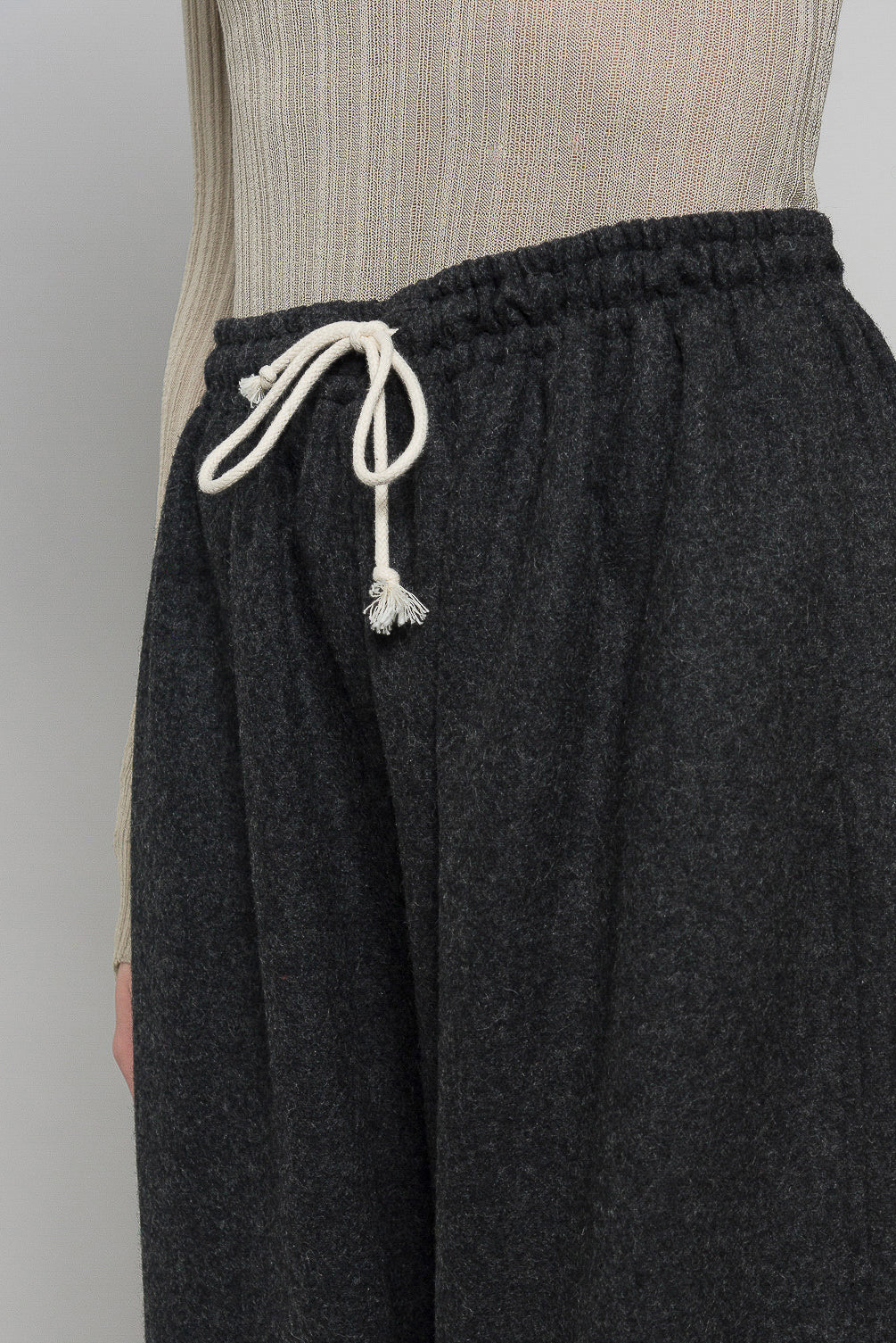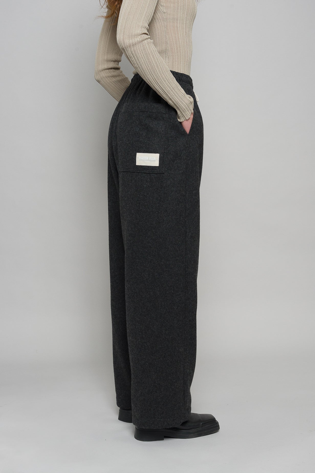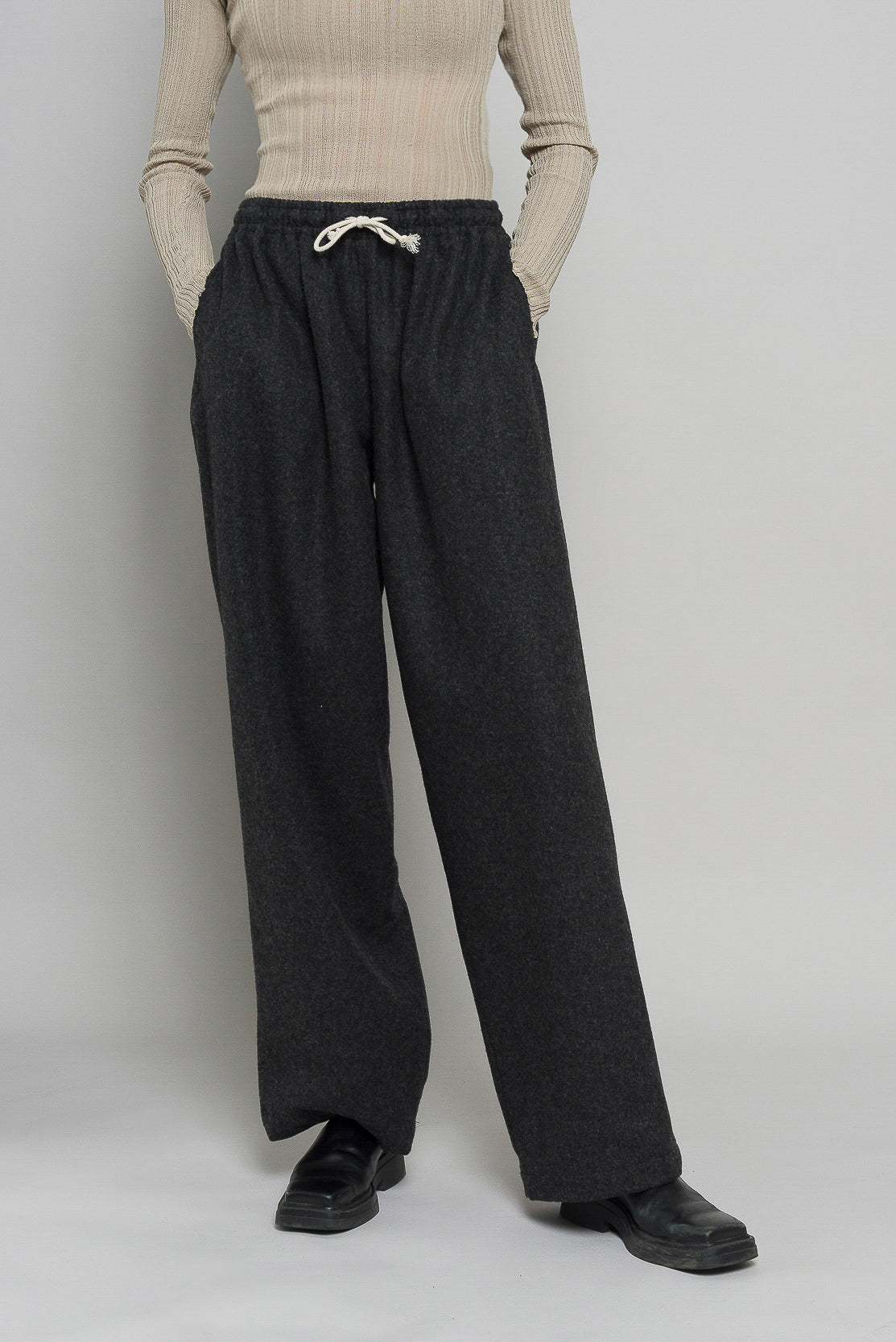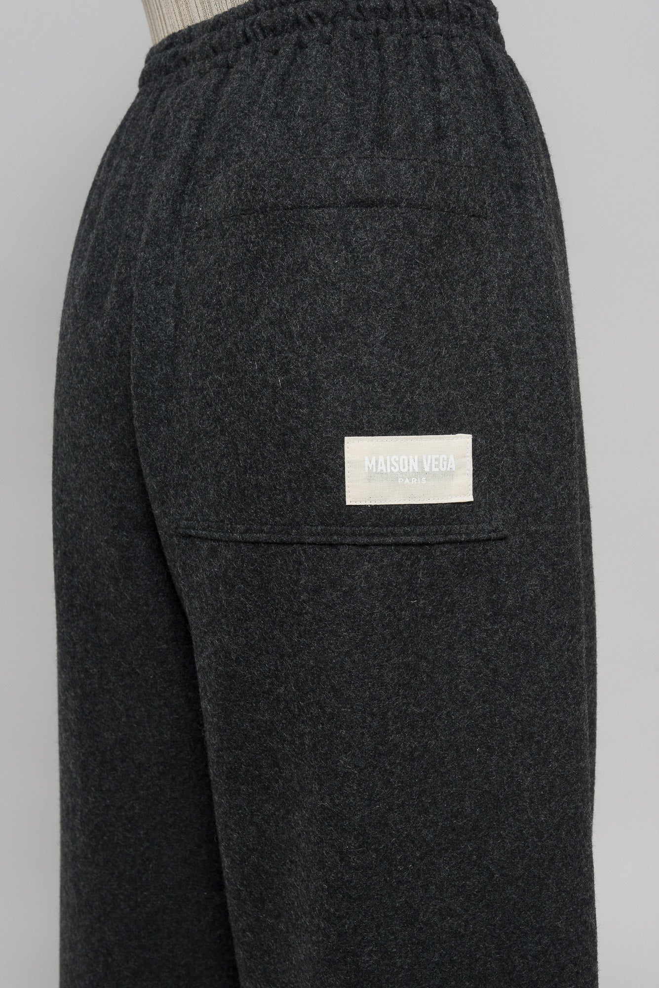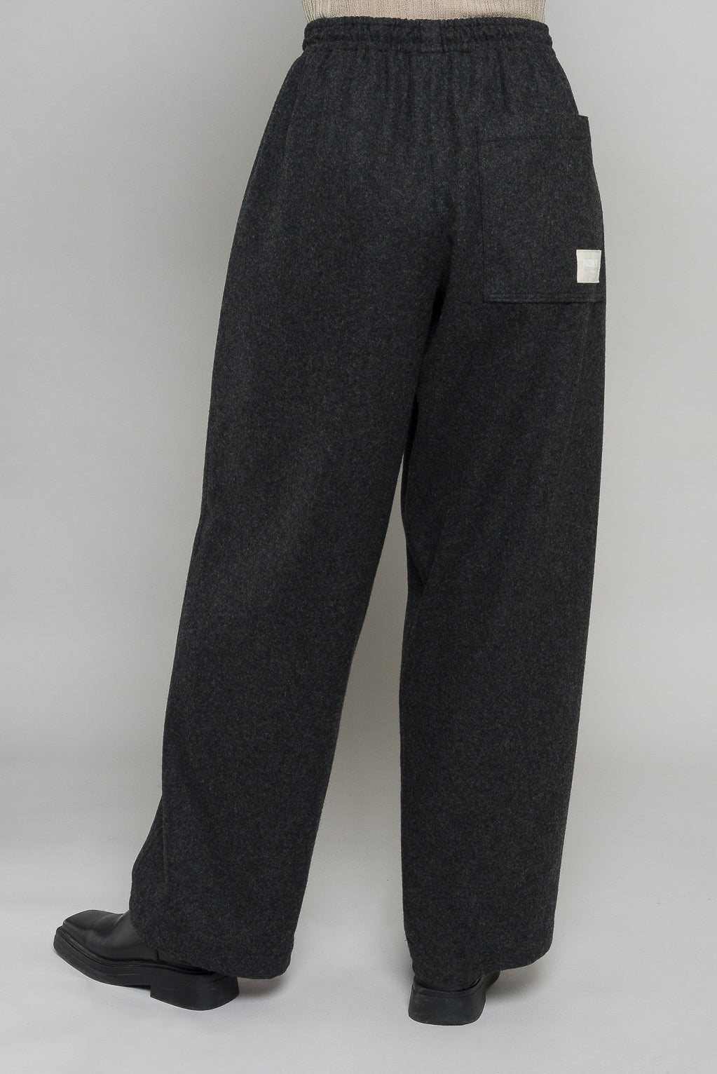 Le pantalon DÜNE s’inspire des tenues d’arts-martiaux. Il est conçu dans un lainage épais gris foncé. Deux poches coutures latérales et une poche plaquée sur l’arrière droit.