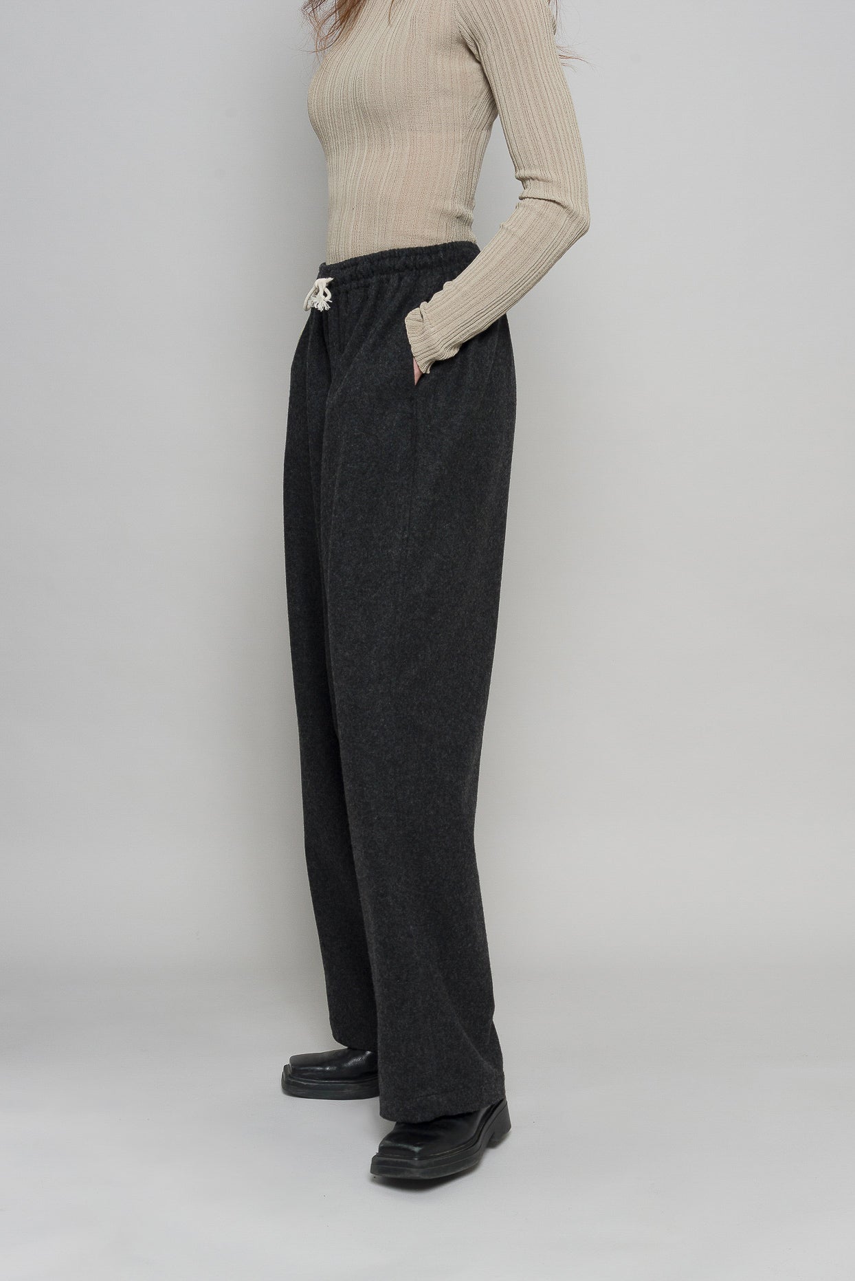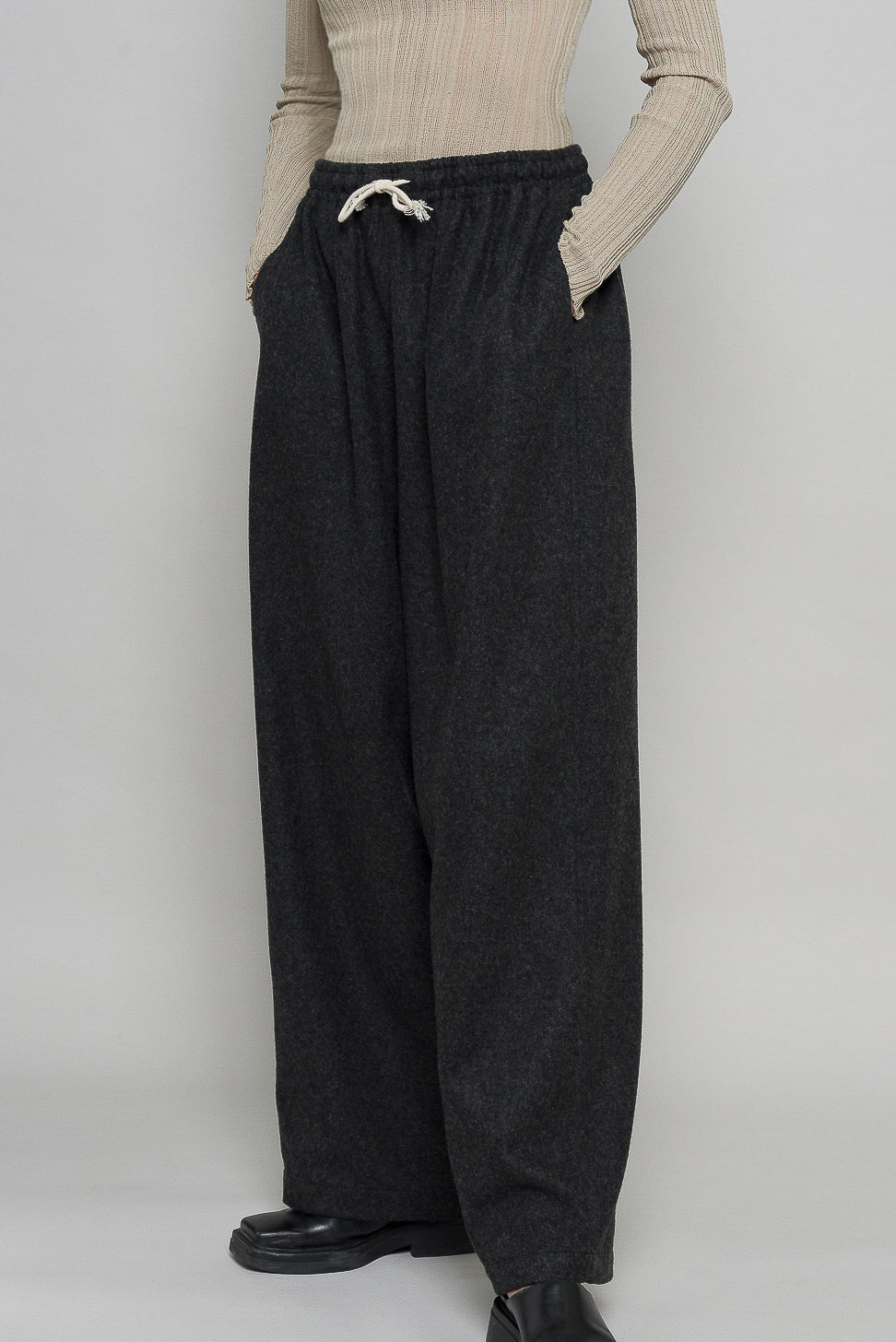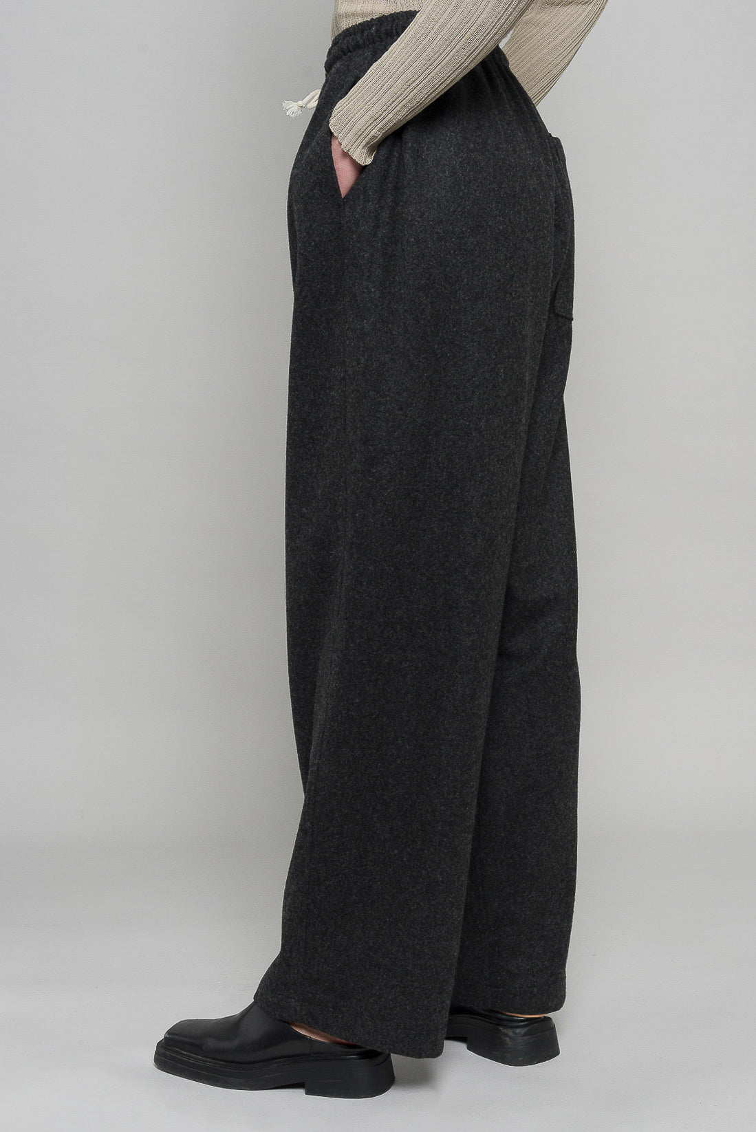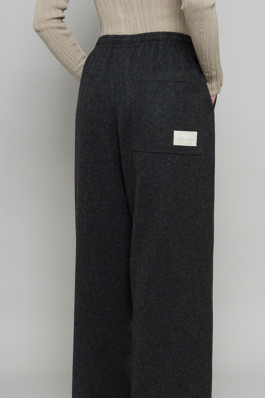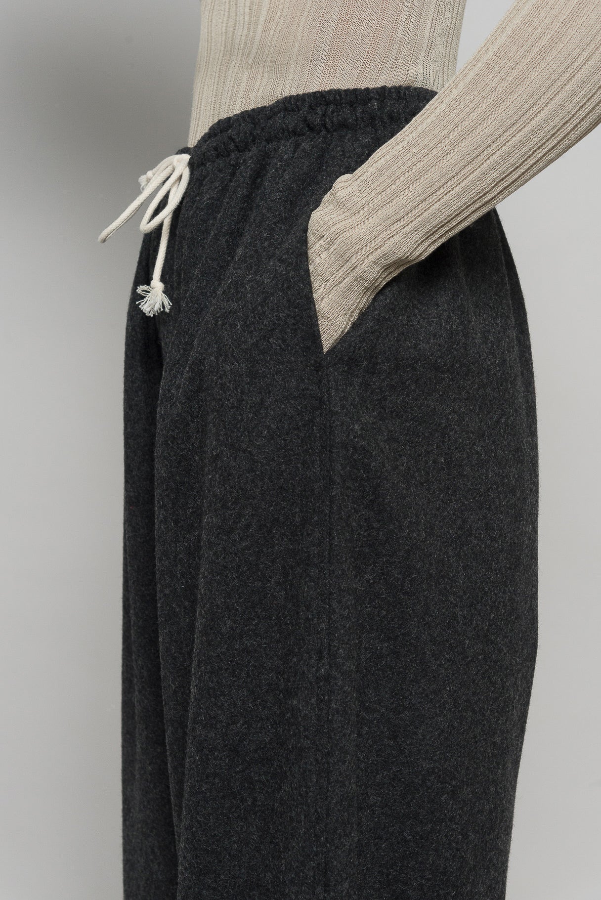 Le pantalon DÜNE s’inspire des tenues d’arts-martiaux. Il est conçu dans un lainage épais gris foncé. Deux poches coutures latérales et une poche plaquée sur l’arrière droit.