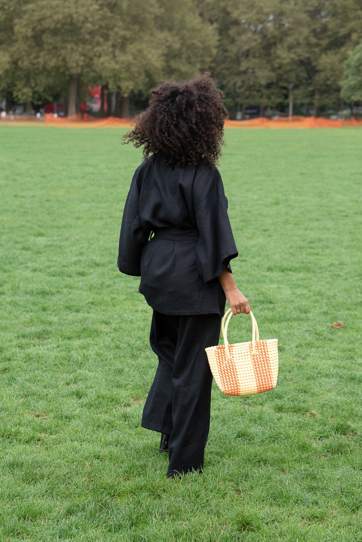 Le kimono Gemini s’inspire des tenues traditionnelles d’Okinawa en lin. Cette matière donne au vêtement légèreté, souplesse et douceur. C’est une pièce unisexe, qui peut se porter comme une veste, une chemise ou une sur-chemise.